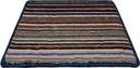 Crafted by skilled artisans using high-quality recycled fabric, this rug is an eco-conscious choice that blends durability with artistic appeal. The intricate striped pattern features a dynamic mix of warm, earthy tones and subtle blues, creating a bold yet balanced design that adds depth and texture to any room. The edges are reinforced with a finely stitched border, ensuring longevity and resistance to fraying, making it a practical and stylish addition to your home.