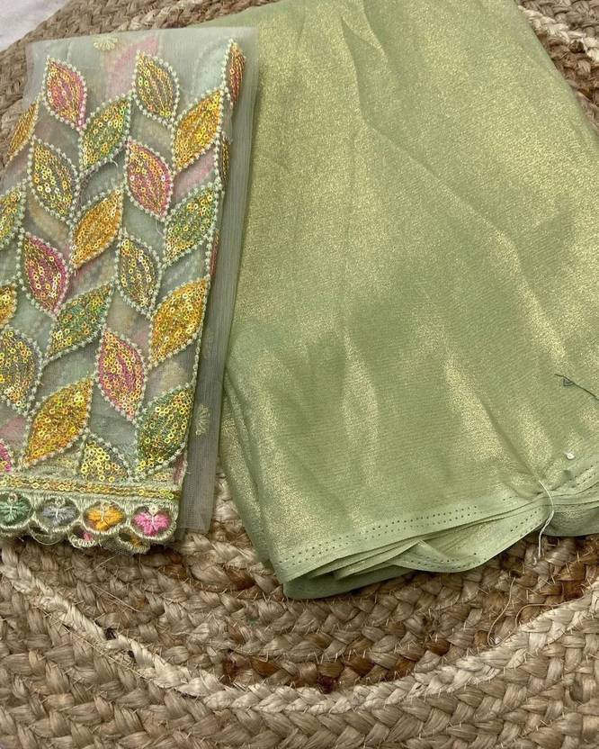 Ruhabs Beautiful Soft Shimmer Chiffon Sarees with Embroidered Blouse