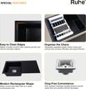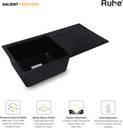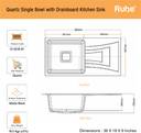 RUHE Black Quartz Single Bowl Kitchen Sink with (36 x18 x9 Inch) Natural Black Granite Matt Finish Vessel Single Bowl With Drain Board Sink Vessel Sink (Black, Anti- Discoloring & Fade Proof Color, UV Proctected)