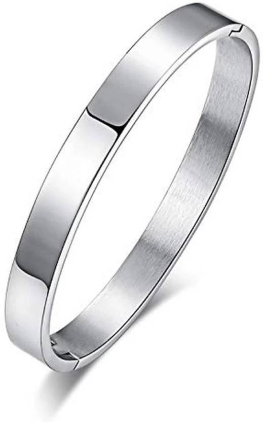 Fashionable piece of bracelet made with High Polished Stainless Steel, which makes it unique and eye-catchy. Wear this bracelet with any of your outfits for the dashing and handsome look. Enhance your wrist Game with this extremely stylish Bracelet. CLASSICAL DESIGN - Just simple Bracelet for Men, an eternal classical design, simplest is the best.VERSATILE WEAR - You can wear it when you working, sporting, shower, and you can also wear it in casual,the classic style of the bracelet makes it perfect for stacking with other bracelets as well.Our Product is perfect for valentines Anniversary Birthday gift for Husband boyfriend Men. Storage: It is advisable to store jewellery in a zip lock pouch (air tight pouch), keep away from water, perfume and chemicals and clean it with dry and soft cloth COMFORT FIT - The size of the Kada: "Diameter 2.6 Inch & Length is 2.2 Inch"The shape of the kada is OVAL with polished surface.The hidden clasp makes it look like a solid oval which will fit exactly on your wrist. Push it to help open the kada, easily to take on and take off. NOTE THE SIZE BEFORE PURCHASING