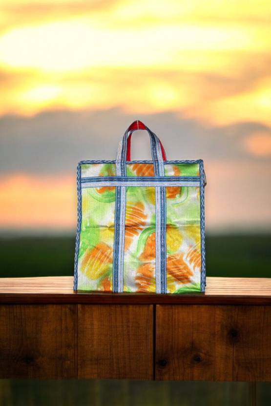 Vibrant Handcrafted Shopping Bag. Made from high-quality, durable , this bag features a lively hand-painted abstract design in shades of orange, yellow, green, and blue – perfect for those who love to stand out sustainably