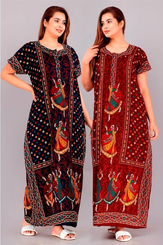 We offers this delicately rich long Printed nighty dress for a sweat free comfort all night long. This a perfect pick for women who are fond of stylish nightwear. This short sleeved nighty is a must have for your night wear needs. Made with 100% soft Cotton to keep you cool all throughout.