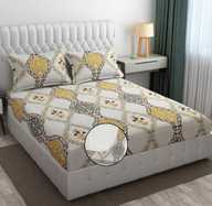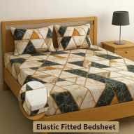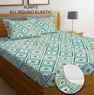 Rumps Cotton, Microfiber King Fitted (Elastic) 350 TC Striped Bedsheet (Pack of 1, coofer, box)