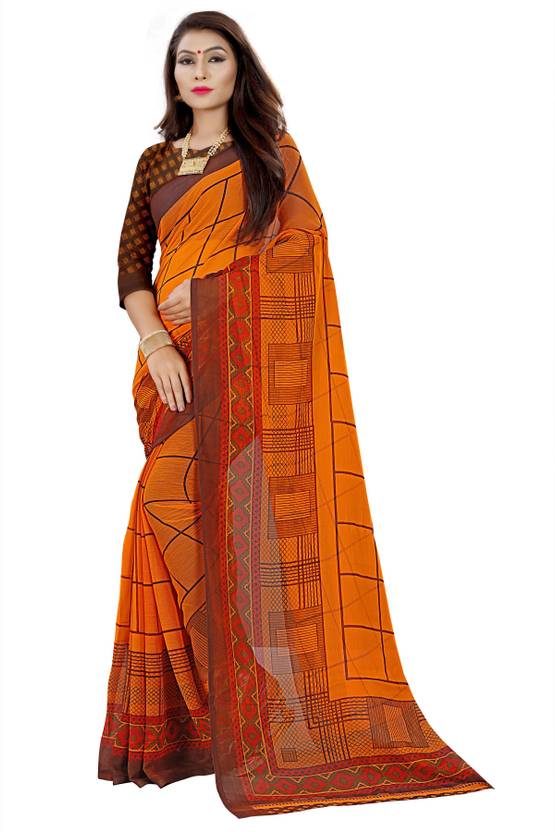 THE PRIVATE LABLE Printed Daily Wear Georgette Saree (Orange)