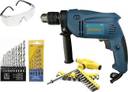RUNEX Reversible Impact Powerful Electric Drill + 1 T-Bar Set + 13Pcs Hss Bit Set +5Pcs Masonary Bit Set + 1 Eye Safety Goggle Pistol Grip Drill (13 mm Chuck Size)