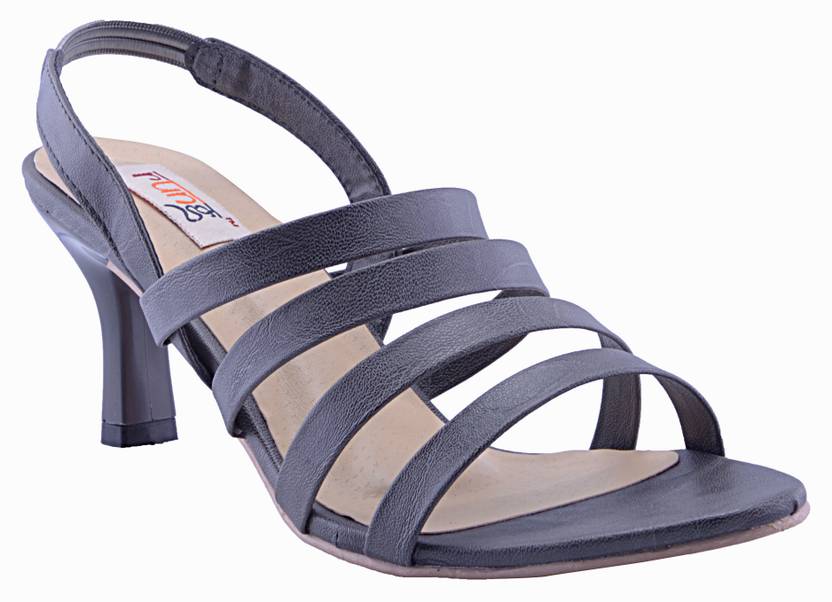 Rung Women Heels Sandal  (Grey , 6 UK/India)
