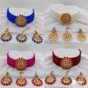Gold Plated Heavy Choker Necklace Set for Women it is made of Alloy. This choker set will enhance your look in special occasions such as ring ceremony, wedding and festive time. Make your moment memorable with this range. This jewel set features a unique one of a kind traditional embellish with antique finish.