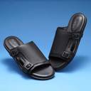 Discover the perfect blend of comfort and style with Ruosh's black leather sandals. Designed with added heel and arch cushioning to ensure optimal support, these sandals also feature unique upper with monks, adding a touch of classiness to your look.