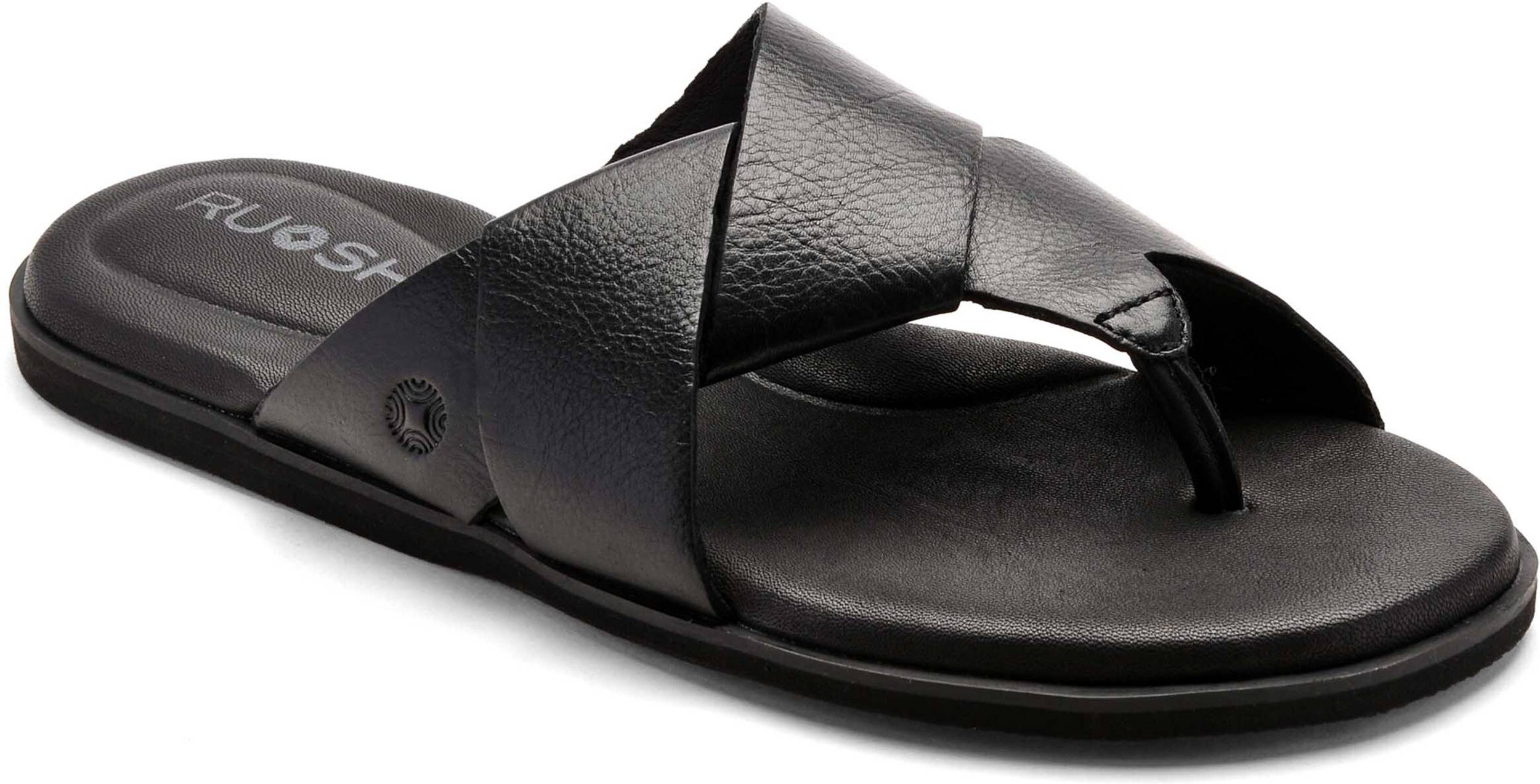 Discover the perfect blend of comfort and style with Ruosh's black leather sandals. Designed with added heel and arch cushioning to ensure optimal support, these sandals also feature unique upper pattern, adding a touch of individuality to your look.