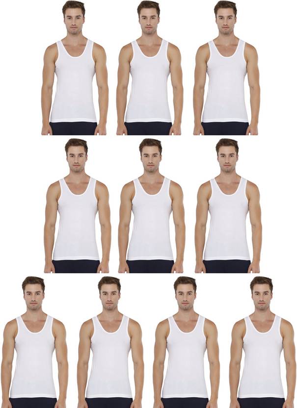 Rupa Bruno Men's Cotton White Sleeveless Vest - Pack of 12 100% Natural Premium Cotton. Modern Fit. Contoured armholes for ease of movement. Special smoothness-enhancing Ox fresh knit these vests keep you at ease. Tagless
