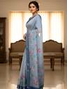 Digital Printed with Peacock and Floral Motifs all over the saree. Subtle Silver Zari Border adds richness.