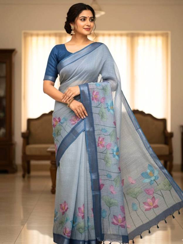 Step out in style with this Elegant Blue Linen by Linen Saree, designed with intricate peacock and floral digital prints. Crafted from soft and breathable linen fabric, it offers a luxurious drape and all-day comfort. The subtle silver zari border adds a sophisticated charm, making it a perfect choice for festive events, office gatherings, and elegant parties. Pair it with minimal jewelry for a graceful ethnic look.