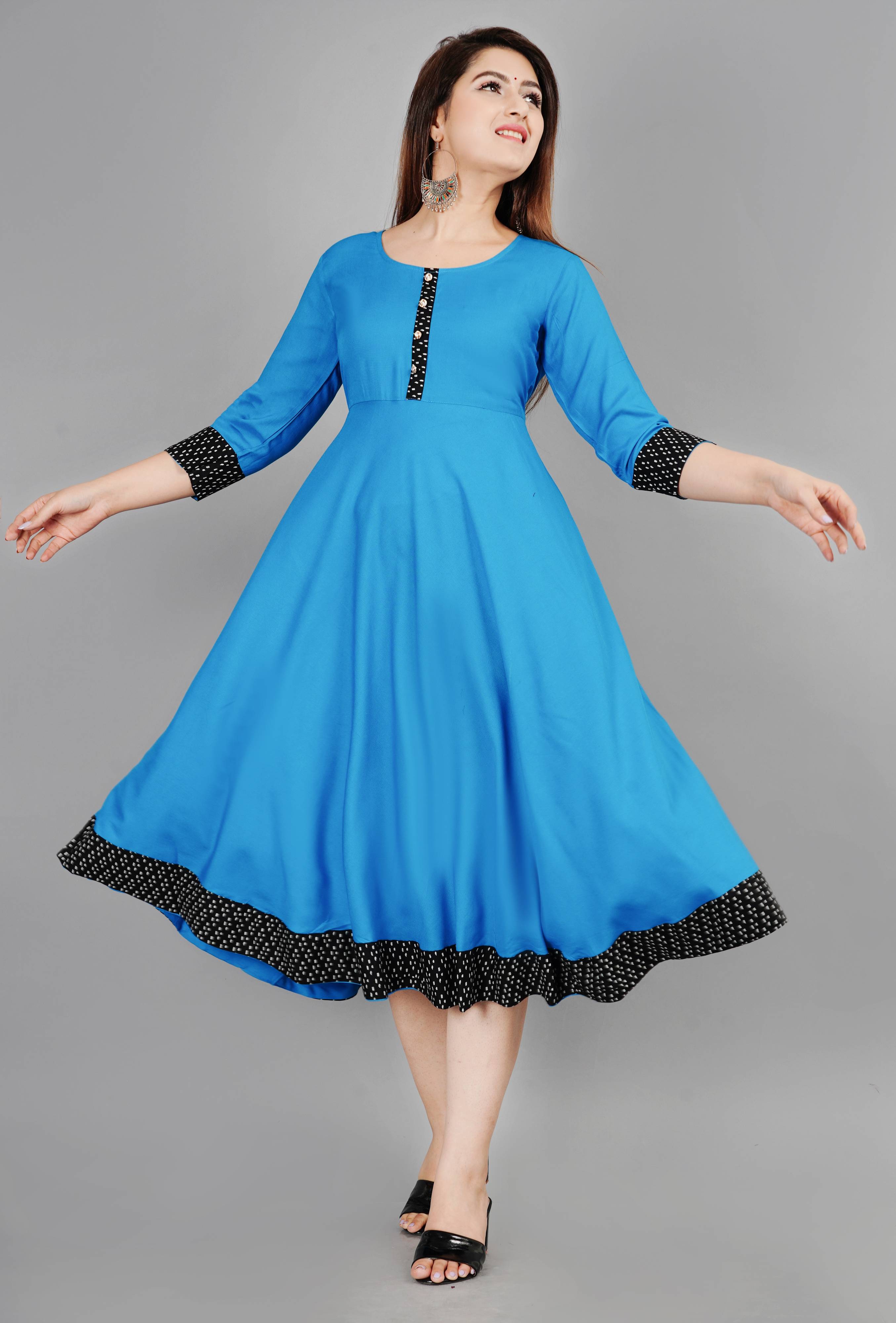 RV-001-ANARKALI KURTI-BLUE-L