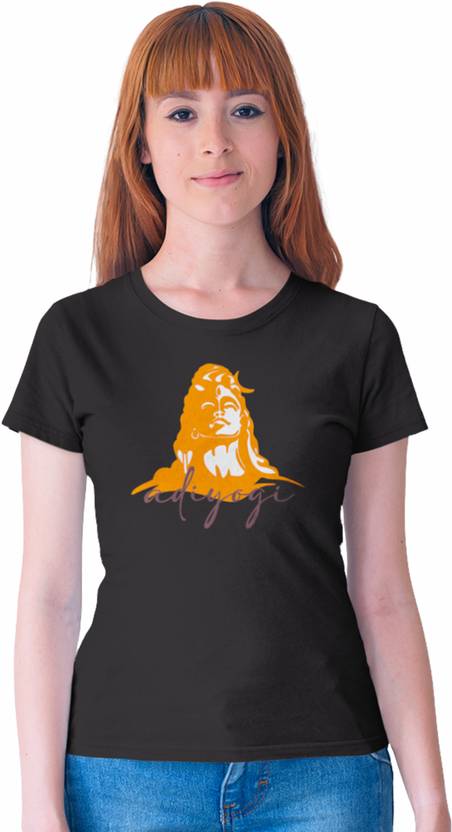 Rushaan Women Printed Round Neck Cotton Blend Black T-Shirt