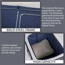 Multiple usage double-zipped bags can be used as under-bed storage organizer, garments organizer wardrobe organizer, closet, cabinet, shelf organizer, and stackable bag that ensures easy opening-closing on sides and top. High-quality fabric material with two handles easy to carry and a transparent view for clear visibility of the items inside. The sturdy firm steel frame gives maximum space for clothes and collapsed flat when not needed. Also very useful to store items that are not-so-frequently used in the home. Perfect foldable wardrobe organizer storage box for sarees, clothes, garments, kids' dresses, quilts, shirts, blankets, and toys. Carry handles lift bags for stacking or transporting from place to place so that you can easily move to shelves, closets, etc.