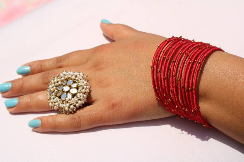 RUSHIKHA COLLECTIONS Brings Women jewellery especially Silk Thread Bangles adore a woman. They can wear it on different occasions. They have special importance on ring ceremony; wedding and festive time. They can also wear it on regular basics. Make your moment memorable with this range. This Bangle set features a unique kind of traditional embellish with a Royal finish.