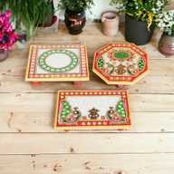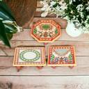 RUSHVILLE All Purpose Marble Pooja Chowki /God Aasan Marble All Purpose Chowki (Green, Pack of 3)