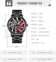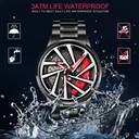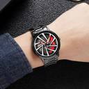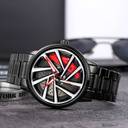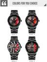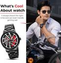 Featuring a striking design inspired by car wheels, this men's analogue watch makes a memorable impression with its distinctive aesthetic. The special spinning dial introduces a dynamic aspect, rotating completely to mimic the inner workings of a machine. This eye-catching element serves both as a functional timepiece and a bold fashion statement.