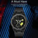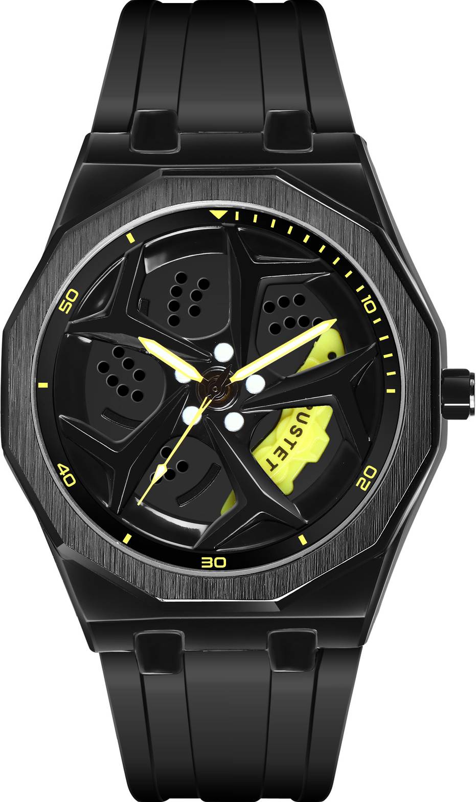 The RUSTET Men's Watch has a cool design inspired by car wheels, making it unique and fashionable.The watch has a special spinning dial that can rotate all the way around. It looks like the inside of a machine and is perfect for people who love cars.This watch is made to last. It has a strong metal case and a special coating that won't fade. The glass on the front is 3D and adds a classy touch.Inside the watch is a Japanese quartz movement, which means it keeps time really well. You can trust it to always show the right time.The watch can handle being wet. It's good for daily activities like swimming and snorkeling. Just keep in mind, it's not for deep diving.