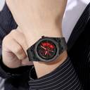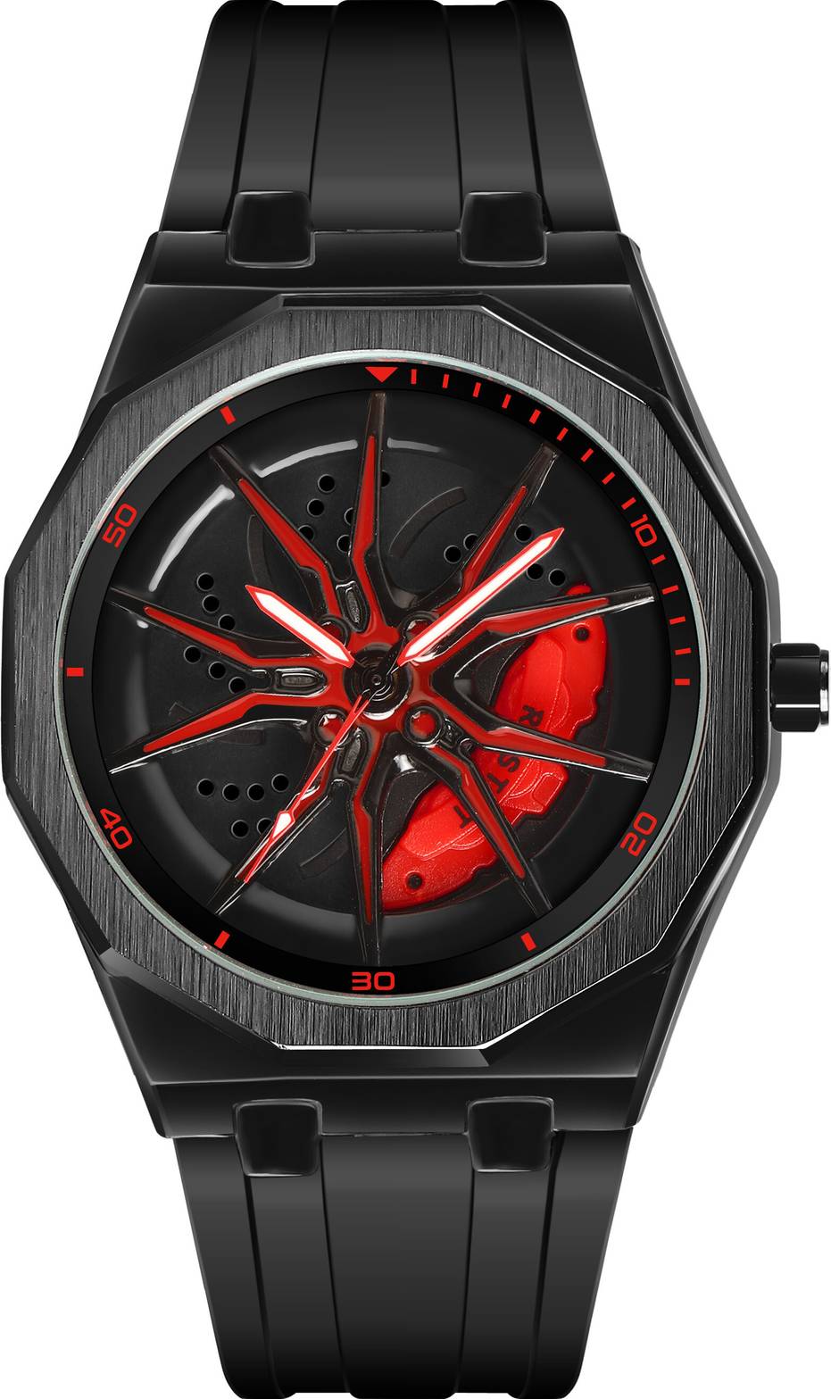 The RUSTET Men's Watch has a cool design inspired by car wheels, making it unique and fashionable.The watch has a special spinning dial that can rotate all the way around. It looks like the inside of a machine and is perfect for people who love cars.This watch is made to last. It has a strong metal case and a special coating that won't fade. The glass on the front is 3D and adds a classy touch.Inside the watch is a Japanese quartz movement, which means it keeps time really well. You can trust it to always show the right time.The watch can handle being wet. It's good for daily activities like swimming and snorkeling. Just keep in mind, it's not for deep diving.