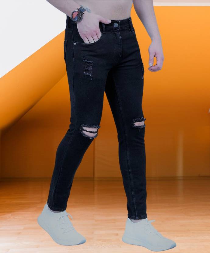 The Rusticblooms Black Ripped Jeans are designed with a modern edge, combining style and comfort for everyday wear. Made from a premium stretch denim, these jeans offer a slim fit that contours to the body while allowing full mobility. The jet-black wash adds versatility, ideal for pairing with any top, while the distressed, ripped details along the knees and thighs give a rugged, streetwear-inspired look. Finished with five-pocket styling, a classic zip fly, and reinforced stitching, these jeans are a staple for casual outings or a night out.