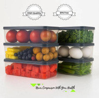 Boasting a wide range of uses, these fridge containers are suitable for storing fruits, vegetables, seafood, meat, and various other kitchen essentials. Consequently, they support maintaining an organised refrigerator and pantry by keeping different ingredients neatly separated. This set includes up to six containers, providing ample space for sorting and storing diverse food items. Furthermore, these containers serve well for organising grains, pulses, cereals, and dry fruits, offering a practical solution for maintaining order in both the fridge and kitchen shelves.