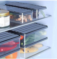 Designed to fit within the refrigerator side door, these fridge containers are ideal for kitchens and refrigerators where space is limited. Also, their compact profile allows them to slot into tight areas without overcrowding the shelves. Besides, the stackable nature of these containers supports efficient organisation, helping to utilise vertical storage space effectively. This makes it convenient to store multiple containers while keeping everything within easy reach.