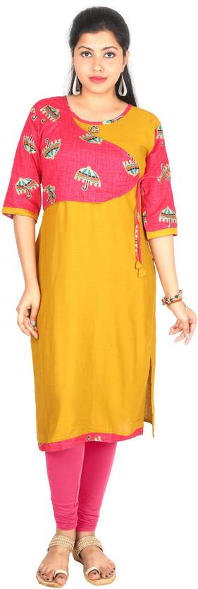 Women Printed Pure Cotton Straight Kurta (Yellow)