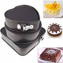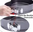 The Springform Pan with non-stick coating has a detachable base so you can transport, decorate and serve your baked masterpiece with ease. Set of 3 springform pans includes 3 different shapes for versatility. Guaranteed non-stick aluminum with removable bottom heats evenly and provides quick, effortless release of baked goods intact. Non-corrosive, stain-resistant and dishwasher-safe for easy maintenance. Heavy duty steel buckle forms a tight seal around the detachable bottom, creating a leak-proof barrier that turns out perfect cheesecakes, streusels and other delicious desserts for family and guests. ?Spring Latch Lock: The spring latch locks are well designed and placed to get a perfect fit and round shape.