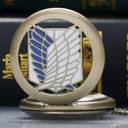 | Key Features | - Anime Attack on Titan Inspired Analogue White Round Dial Antique Pocket Watch Keychain., Good workmanship , Elegant design with precise quartz movement , Dial color in white with numerals in black , The back case are smooth with engravings , Removable keyring with a clip at the end , Retro watch case brings you back to your memory in youth., Daily water resistance(not for showering and swimming) , Case Material: Alloy , Chain Material: Alloy , Size/Measurements: Case diameter: 4.6 cm Length : 12.8 cm (including keyring) Watch weight : 50 g Package, Included: 1* pocket watch 1* Keyring. Decorate Your Car, Bike, Scooter, Locker, Wardrobe, Home And Office Keychain., Attention: Once you receive the quartz watch: Press the crown at the top of watch, the front plate will open. Setting time: Pull the crown away from base of the watch and turn the crown clockwise until reaching the exact time.