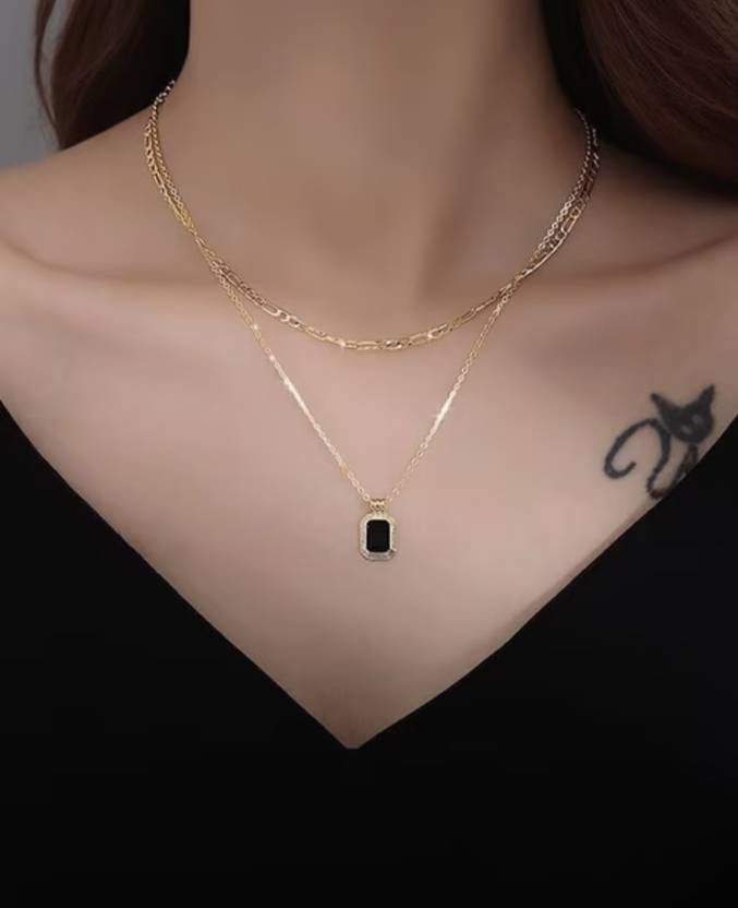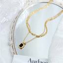 RV YUWON Gold Plated Double layered Pendant Necklace Cubic Zirconia Gold-plated Plated Stainless Steel Layered