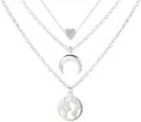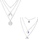 2 Combo 3 Layer Step Multi Layered Necklace Western Heart Moon Star Chain Silver