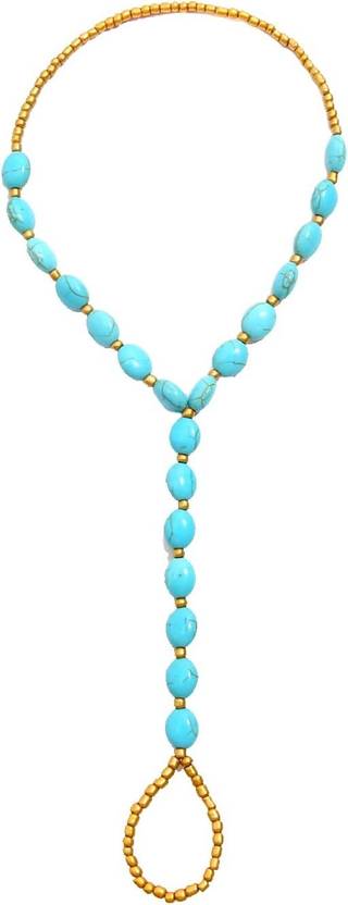 Elevate your summer style with the RVM Jewels Retro Boho Beaded With Toe Ring Bohemian Style Turquoise Blue Beads Gold Toe Payal with Toe Ring Attached. This stunning piece is perfect for any fashion-forward woman or girl looking to add a touch of elegance and a unique Bohemian anklet vibe to their wardrobe. The intricate design features a combination of turquoise blue beads and a stylish gold toe ring, making it the ideal ankle chain for beach outings or casual wear. Crafted with care, the blue anklet is both durable and comfortable, ensuring it stays in place while providing a stylish look. This versatile ankle chain not only enhances your foot jewellery collection but also serves as a beautiful beach jewellery piece. Don't miss out on this must-have beach anklet that perfectly combines style and comfort.