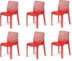 RW REST WELL Web Designer Plastic Chair for Home, Cafe|Lightweight & Stackable Seating Chair| Plastic Outdoor Chair (Red, Set of 6, Pre-assembled)