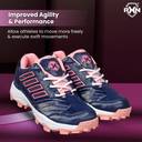 RXN Hockey Shoes for Men | HS-11 Hockey Sports Shoes with Upper Synthetic Leather Hockey Shoes For Men (Navy, Pink , 9)