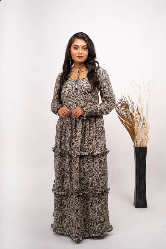 Rayon Blend Stitched Anarkali Gown (Multicolor)
