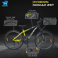 RYDEWIN NOMAD Front Suspension, 85% Installed Water Decal Sticker and Dual Disc Brake 29 T (inch) Mountain Cycle (21 Gear, Yellow, Black, Only Front Suspension)