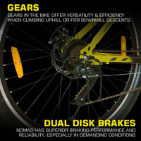 Thanks to a geared system, this cycle offers smooth transitions between speeds, providing flexibility and control whether riding uphill or coasting downhill. Equipped with up to 21-speed microshift gears and easy fire, thumb shifters, it supports various riding styles and conditions. Courtesy of dual disc brakes, this cycle offers strong braking performance and dependable handling, especially when navigating through challenging terrain or wet weather.