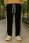 These joggers are super comfortable and stylish. They have a soft stretch fabric that feels good all day. A light-colored stripe runs along the sides, giving them a sporty and trendy look. The waist has an adjustable drawstring, so you can fit it perfectly. Great for gym, travel, and daily casual wear. Just pair them with a t-shirt or hoodie and sneakers