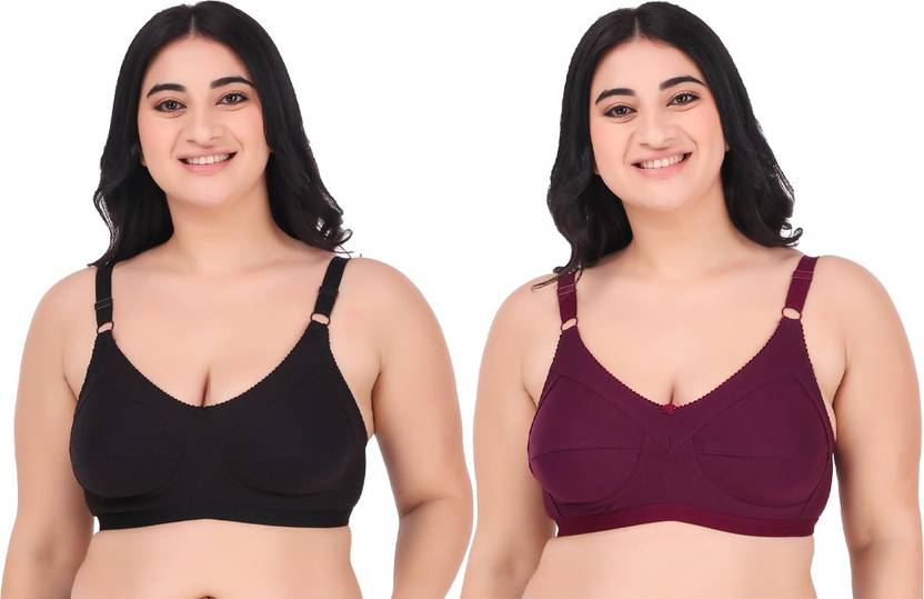 Rymestyle Women Full Coverage Non Padded Bra (Black, Purple)