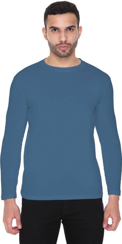 RYTONZ Solid Men Round Neck Blue T-Shirt
