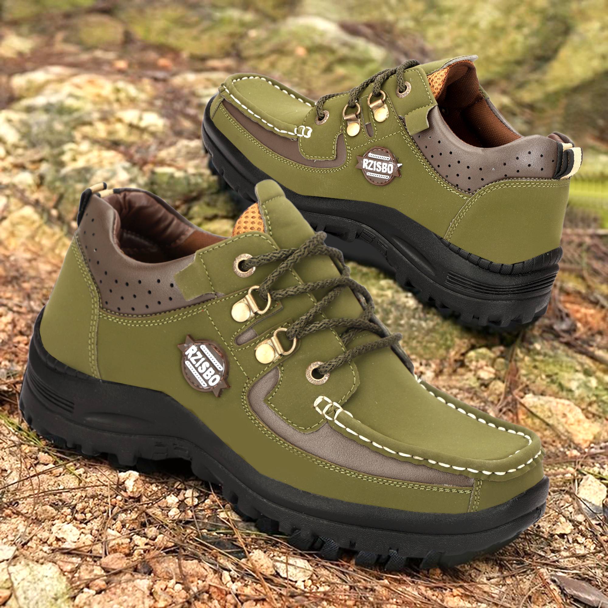 Rzisbo Synthetic Leather Lightweight Comfortable Trendy Walking Hiking Trekking Lace Up Boots For Men (Green , 9)