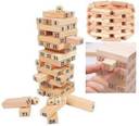 S J SHINE Wooden Jenga Game For Kids Wooden Blocks 51 Pcs Challenging Color Wooden Tumbling Tower, Wooden Zenga Toys with Dices Board Educational Puzzle Game for Adults and Kids Wooden 51 Wooden Building Block (Brown)