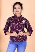 Girls Party Cotton Linen Blend A-line Top (Maroon, Pack of 1)