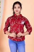 S K MAHIR FASHION Girls Party Cotton Linen Blend A-line Top (Maroon, Pack of 1)