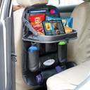 MULTIFUNCTIONAL SEAT ORGANIZER: A must-have accessory for travelling, this heavy-duty car seat organizer is a great storage pack to store your phone, tablet, water bottle, umbrella and tissue box in a organised manner while also offering you a comfortable option for dining during long and exhausting trips with its foldable table tray. ADJUSTABLE ORGANIZER WITH UNIQUE FOLDABLE TRAY: This car backseat organizer is having a buckled strap along with various attach points to ensure perfect fit to any vehicle such as car, SUVs and van. Besides, our offered car back seat organizer has a unique foldable tray which is made by board that can bear up to 2 kg of weight. MAX CAPACITY CAR BACK SEAT STORAGE: This car backseat organizer has multiple pockets for different must-have items for any car trip. It has distinct pockets to carry different items in their place securely like documents, maps, pens, snacks, notebooks, smart phones, tissues, umbrella and water bottles. Everything will be close to hand.EASY TO CLEAN & INSTALL: Made using stain-resistant PU leather which is waterproof too, it is quite easy to clean. You just need to wipe it with a wet cloth.
