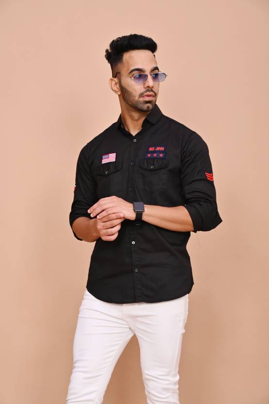 S-LINE Men Solid Casual Black Shirt