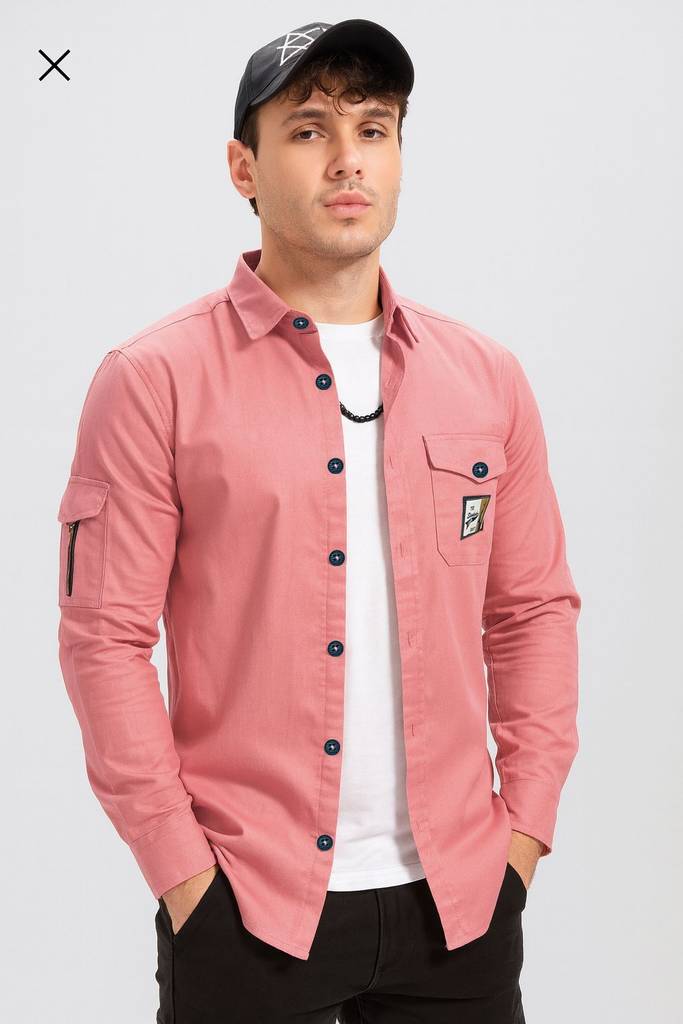 S-LINE Men Solid Casual Pink Shirt