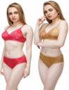 S LiOn S Bra & Panty Set Self Design Red, Gold Lingerie Set