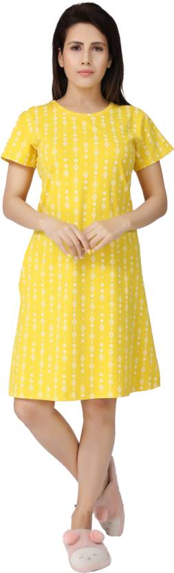 One more collection of Short Nighty / Half Nighty / Sleep Dress / Knee Length Dress / Long Top from the brand S & M. It is made from cotton Lycra printed fabric. It comes with round neck and one side pocket. The length is 36 inch in all sizes which will be up to knee. The measurement of chest for M, L, XL, XXL, 3XL and 4XL is 34, 36, 38, 40, 42 and 44 inches. You can wear this dress as per your wish like casual wear, lounge wear, leisure wear and as sleep wear also.